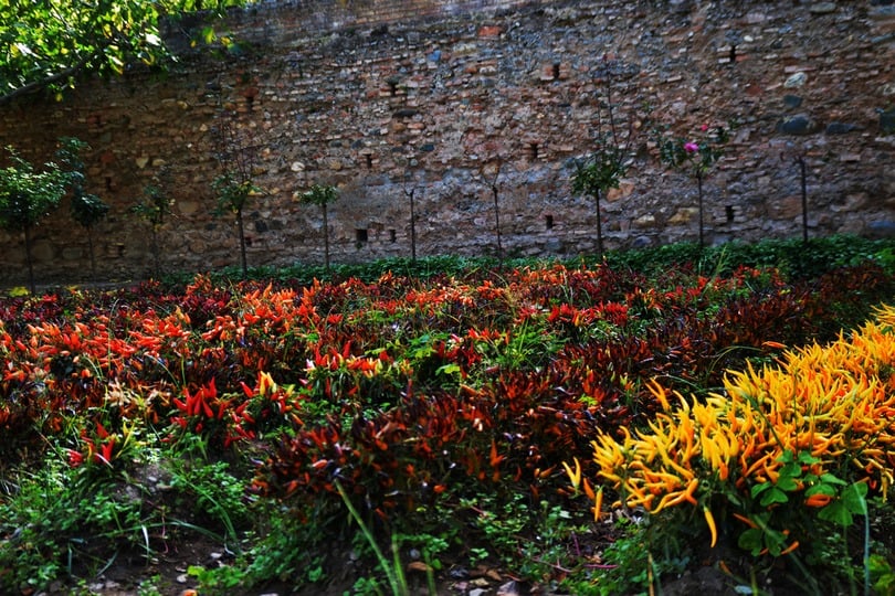 Ook wordt er binnen de muren nog aan landbouw gedaan. In dit geval de aanbouw van pepers en verschillende kleuren.