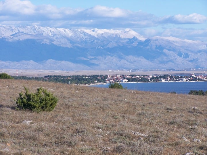 Het Velebitgebergte in de winter met zijn besneeuwde toppen op meer dan 1700 meter hoogte.