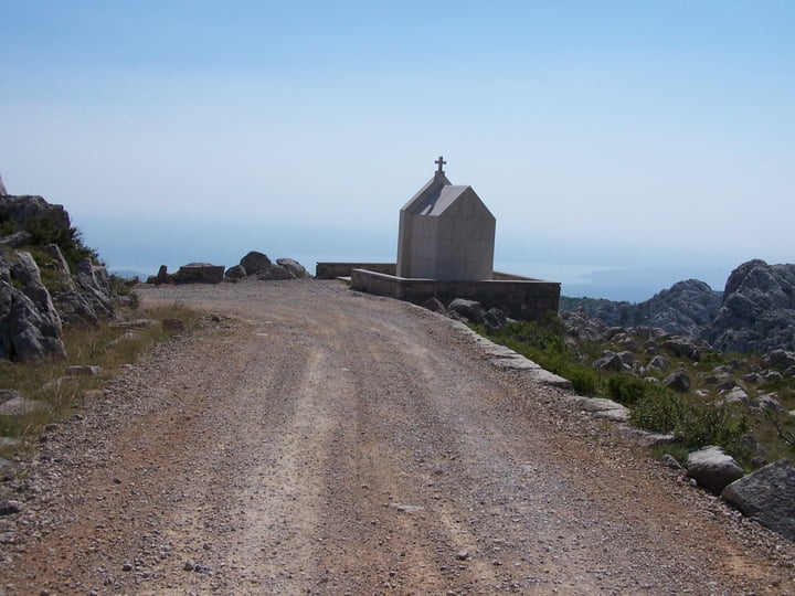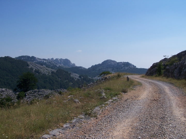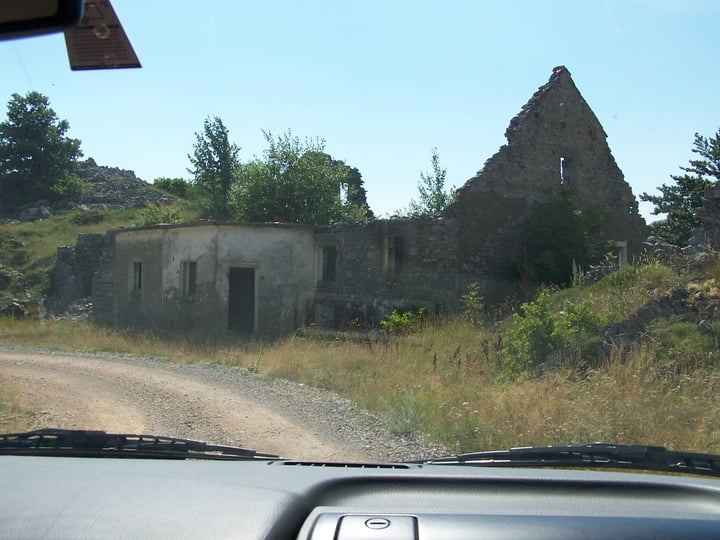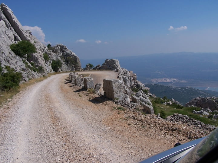 We gaan weer verder met de Velebittocht. Inmiddels reden we op een onverharde weg, met zowel links als rechts waarschuwingsborden dat het vermijnd kan zijn. (Was in 2008)